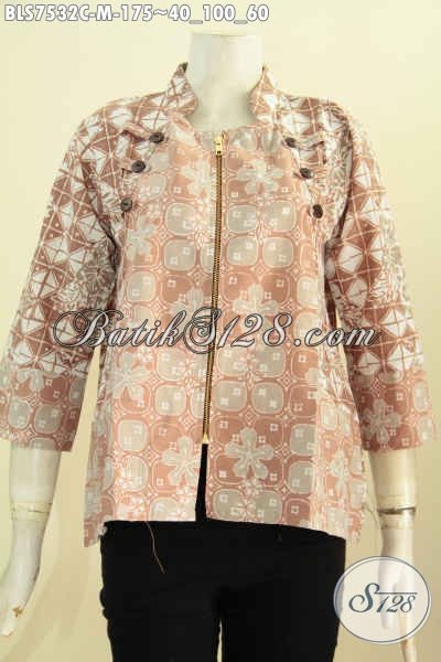 Busana Batik Kerja Wanita Muda, Pakaian Batik Perempuan Klasik Model Blus Ayus Kerah Shanghai Resleting Depan Motif Keren Proses Cap Harga 175K [BLS7532C-M]