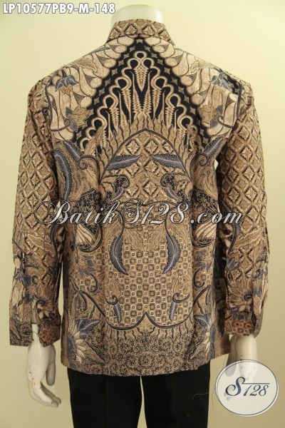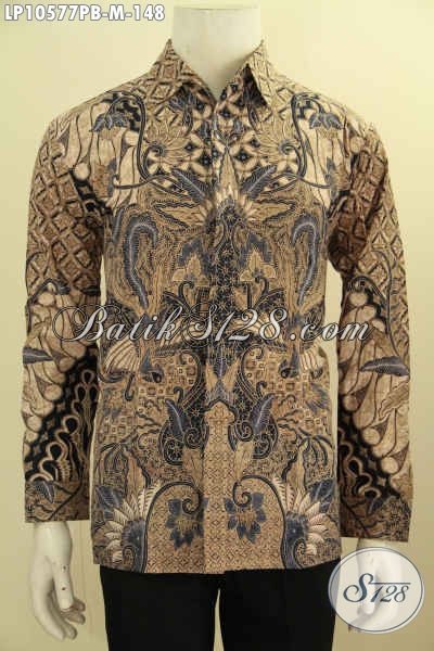 Busana Batik Khas Jawa Tengah Untuk Pria Muda, Kemeja Lengan Panjang Motif Klasik Printing Cabut Untuk Seragam Kerja Dan Rapat, Tampil Mempesona Dan Berkelas Harga 100 Ribuan Saja [LP10577PB-M]