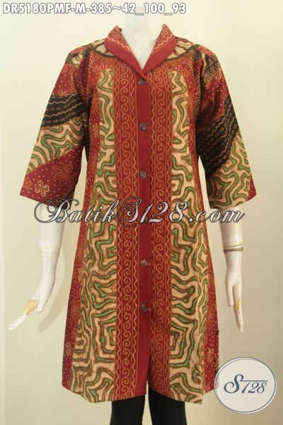 Busana Batik Klasik Dengan Nuansa Warna Merah, Baju Batik Masa Kini Berbahan Adem Proses Kombinasi Tulis Model Kerah Langsung Daleman Full Furing Harga 385K [DR5180PMF-M]