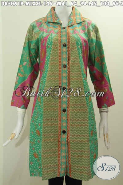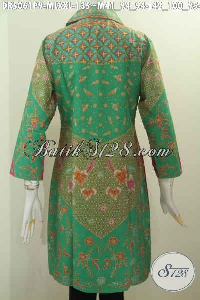 Busana Batik Klasik Nuansa Warna Hijau Berbahan Halus Proses Printing, Baju Batik Solo Nan Berkelas Untuk Wanita Tampil Trendy Dan Mewah [DR5061P-M , L , XXL]