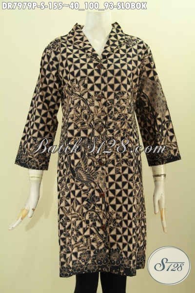 Busana Batik Klasik Wanita Muda, Baju Batik Terusan Motif Slobok Proses Printing, Dress Batik Kerah Langsung Harga 155K [DR7979P-S]