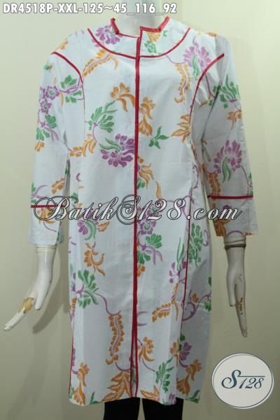 Busana Batik Kwalitas Bagus Ukuran 3L, Produk Dress Plisir Kain Polos Istimewa Motif Bunga Proses Printing Untuk Wanita Gemuk Bisa Tampil Modis Dan Kece [DR4518P-XXL]