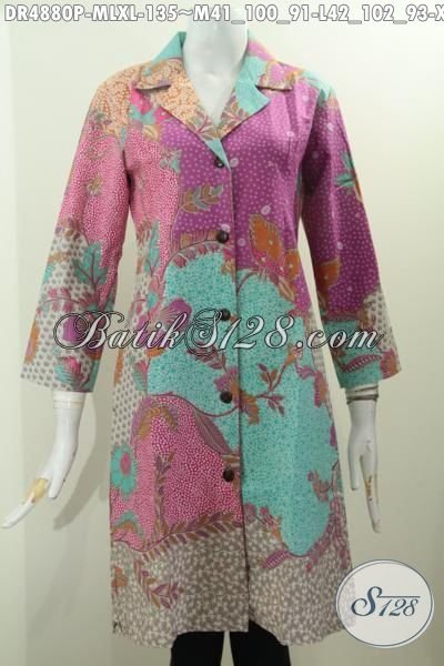 Busana Batik Kwalitas Halus Proses Printing, Baju Batik Kerah Safari Buatan Solo Indonesia Warna Pagi Sore Untuk Santai Dan Acara Formal [DR4880P-M , L , XL]