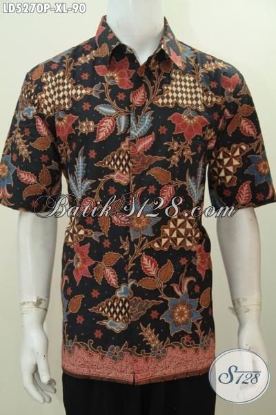 Busana Batik Lelaki Dewasa Bahan Halus Proses Printing, Kemeja Batik Motif Bunga Model Lengan Pendek Tampil Berkelas Dengan Harga Di Bawah 100 Ribuan [LD5270P-XL]