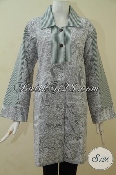 Busana Batik Lengan Panjang Abu-Abu, Baju Batik XL Desain Mewah Trend Masa Kini, Pakaian Batik Perempuan Dewasa Proses Print [BLS3485-XL]