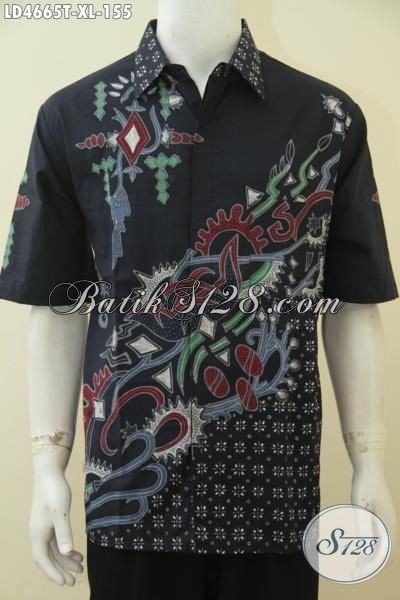 Busana Batik Lengan Pendek Dasar Hitam Keren Bro, Baju Batik Cowok Size XL Berbahan Halus Motif Trendy Bikin Penampilan Makin Exist [LD4665T-XL]