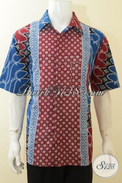 Busana Batik Lengan Pendek Dengan Kombinasi Motif Yang Trend Dan Berkelas, Pakaian Batik Cap Hadir Dengan Warna-Warna Masa Kini Yang Fashionable Cowok Banget [LD3931-XL]