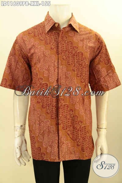Busana Batik Lengan Pendek Elegan Bahan Halus Motif Dengan Sentuhan Klasik Proses Printing Cabut, Pakaian Batik Solo Asli Yang Menunjang Penampilan Pria Lebih Berkelas Hanya 155K [LD11609PB-XXL]