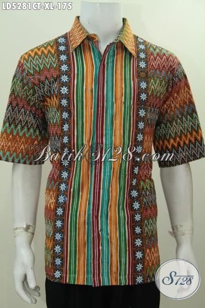 Busana Batik Lengan Pendek Modis Mottif Kombinasi Proses Cap Tulis, Baju Batik Bagus Dan Halus Produk Dari Solo Trend Pakaian Pria Dewasa Terkini [LD5281CT-XL]