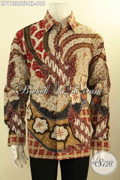 Busana Batik Mewah Dan Premium Model Lengan Panjang, Kemeja Batik Solo Istimewa Pakai Furing Bahan Adem Proses Tulis Asli Motif Bagus Dan Elegan, Cocok Banget Untuk Acara Resmi [LP11386TF-XL]