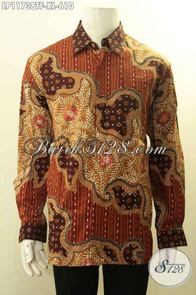 Busana Batik Mewah Lengan Panjang Berkelas, Kemeja Batik Premium Solo Terbaik Untuk Pria Tampil Gagah Menawan, Bahan Halus Motif Tulis Asli Dan Pakai Lapisan Furing [LP11738TF-XL]