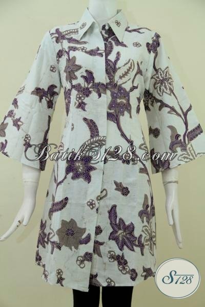 Busana Batik Model Dress Keren Bermotif Bunga Warna Ungu Menimbulkan Kesan Elegan Bagi Yang Memakai, Baju Batik Batik Kombinasi Tulis Berkwalitas Bagus Dan Halus Harga Murah [DR1847BT-L]