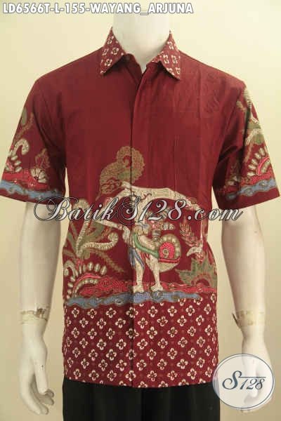 Busana Batik Modern Warna Merah, Pakaian Batik Wayang Terbaru Bermotif Arjuna Proses Tulis Model Lengan Pendek Menunjang Penampilan Makin Ganteng Maksimal [LD6566T-L]