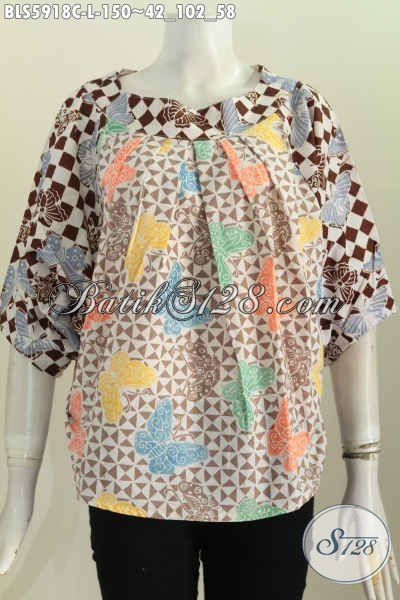 Busana Batik Modis Dari Solo, Blus Batik Keren Tanpa Krah Bahan Halus Motif Bagus Proses Cap Hanya 100 Ribuan [BLS5918C-L]