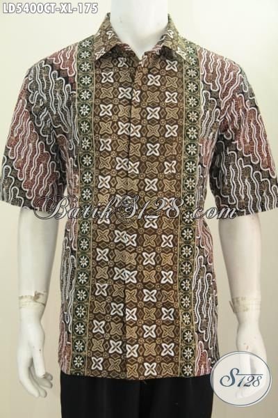 Busana Batik Modis Halus Lengan Pendek Motif Keren, Produk Baju Batik Istimewa Size XL Cocok Buat Kondangan Tampil Lebih Menawan [LD5400CT-XL]
