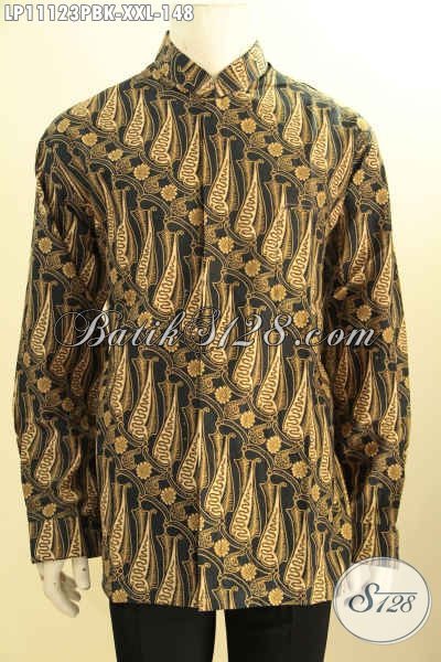 Busana Batik Motif Klasik Lengan Panjang Istimewa, Pakaian Batik Printing Cabut Khas Jawa Tengah Model Koko Kerah Shanghai, Tampil Elegan Berkelas Hanya 100 Ribuan [LP11123PBK-XXL]