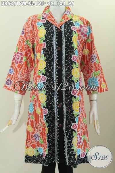 Busana Batik Motif Kombinasi, Pakaian Batik Dress Kerah Langsung Kwalitas Istimewa Asli Buatan Solo Harga Terjangkau [DR6361PM-XL]