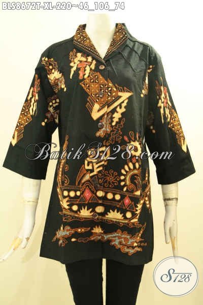 Busana Batik Motif Trendy Dan Unik, Blouse Batik Modis Desain Kerah Langsung Bahan Adem Proses Tulis Kwalitas Istimewa, Tampil Cantik Dan Mempesona [BLS8672T-XL]