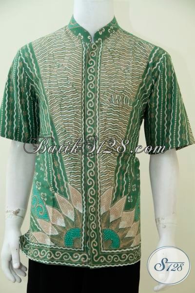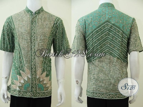 Busana Batik Muslim Keren Trend Motif Terkini, Hem Batik Koko Lengan Pendek Warna Hijau Kesukaan Pria Muda Dan Remaja Masa Kini [LD2489TK-L]