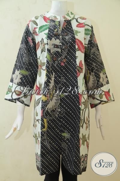 Busana Batik Perempuan Masa Kini, Batik Halus Kombinasi Tulis Buatan Solo, Batik Dua Motif Desain Paling Di Sukai Wanita Pekerja [DR3264BT-XXL]