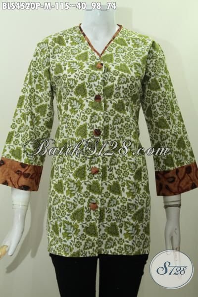 Busana Batik Perempuan Muda Untuk Seragam Kerja Dan Acara Formal, Pakaian Batik Plisir Kombinasi Dengan Kerah Model V Sempurnakan Penampilan Lebih Modis Dan Berkelas [BLS4520P-M]