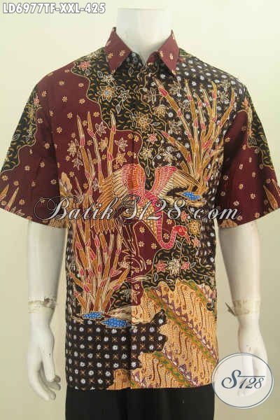 Busana Batik Premium Ukuran XXL, Kemeja Batik Tulis Motif Elegan Dan Mewah Model Lengan Pendek Di Lengkapi Furing Untuk Pria Gemuk Terlihat Gagah Dan Mempesona [LD6977TF-XXL]