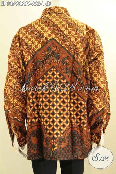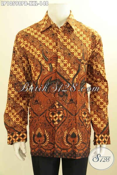 Busana Batik Pria Big Size, Kemeja Batik Lengan Panjang Lelaki Gemuk Motif Klasik Proses Printing Cabut, Pas Buat Seragam Kerja Dan Rapat [LP10598PB-XXL]