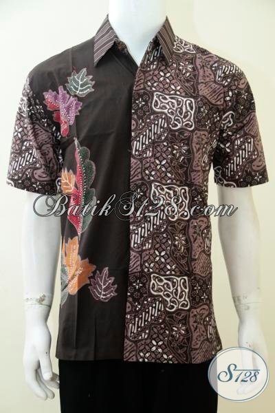 Busana Batik Pria Dewasa Kombinasi Dua Motif Warna Hitam Dan Coklat, Hem Batik Lengan Pendek Kwalitas Premium Harga terjangkau [LD2941CT-M]
