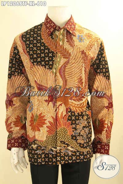 Busana Batik Pria Dewasa Nan Mewah, Kemeja Batik Solo Elegan Model Lengan Panjang Pakai Furing Motif Bagus Jenis Tulis, Penampilan Lebih Tampan Dan Gagah [LP12068TF-XL]