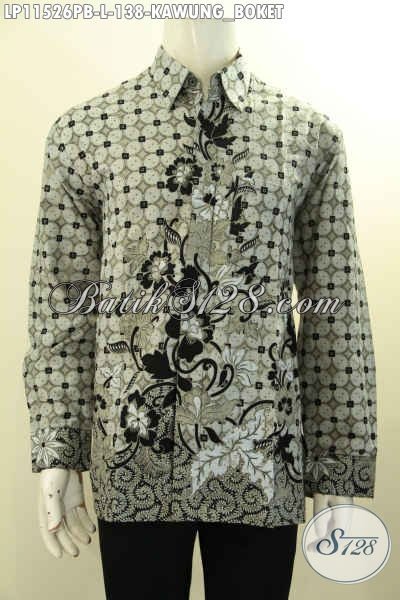 Busana Batik Pria Elegan Lengan Panjang Halus Cocok Buat Ngantor, Hem Batik Halus Motif Kawung Boket Khas Jawa Tengah, Modis Juga Untuk Acara Resmi [LP11526PB-L]
