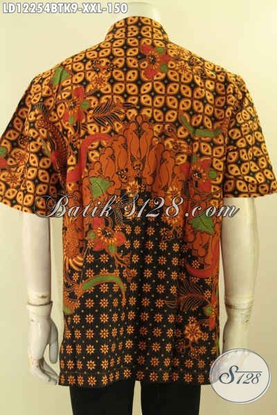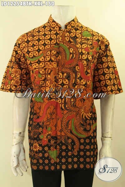 Busana Batik Pria Gemuk, Baju Kemeja Batik Solo Asli Motif Elegan Klasik Jenis Kombinasi Tulis Model Kerah Shanghai, Tampil Tampan Dan Berkelas [LD12254BTK-XXL]