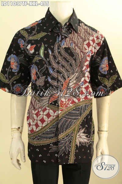 Busana Batik Pria Gemuk Lengan Pendek Elegan Dan Mewah Dengan Lapisan Furing, Pakaian Batik Berkelas Proses Tulis Motif Bagus, Bikin Penampilan Lebih Sempurna [LD11037TF-XXL]