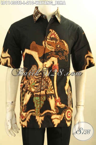 Busana Batik Pria Lengan Pendek Keren Size L, Kemeja Batik Trendy Motif Wayang Bima Tulis Soga, Bisa Untuk Acara Resmi Atau Santai [LD11430TS-L]