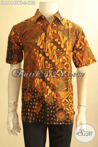 Busana Batik Pria Lengan Pendek Ukuran S, Baju Batik Solo Motif Bagus Kombinasi Tulis Motif Klasik, Bisa Untuk Kerja Dan Acara Resmi [LD11947BT-S]