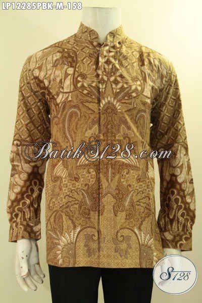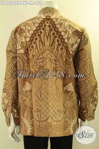 Busana Batik Pria Masa Kini, Kemeja Batik Solo Jawa Tengah Model Kerah Koko Motif Bagus Proses Printing Cabut, Menunjang Penampilan Lebih Sempurna [LP12285PBK-M]