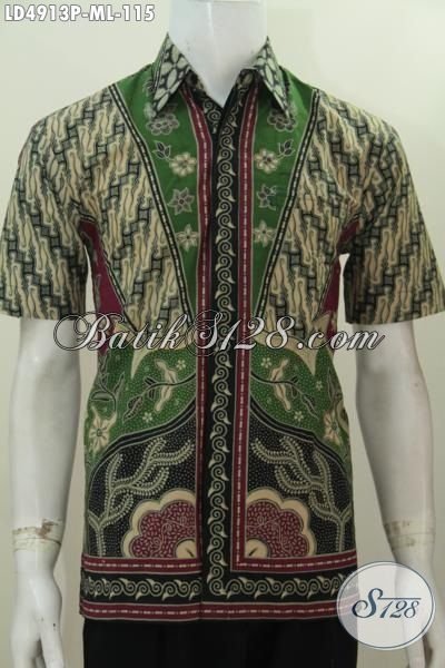 Busana Batik Pria Motif Klasik Dengan Kombinasi Warna Mewah Berkelas, Baju Hem Lengan Pendek Batik Print Elegan Tampail Gagah Hanya Dengan 100 Ribuan [LD4913P-M , L]