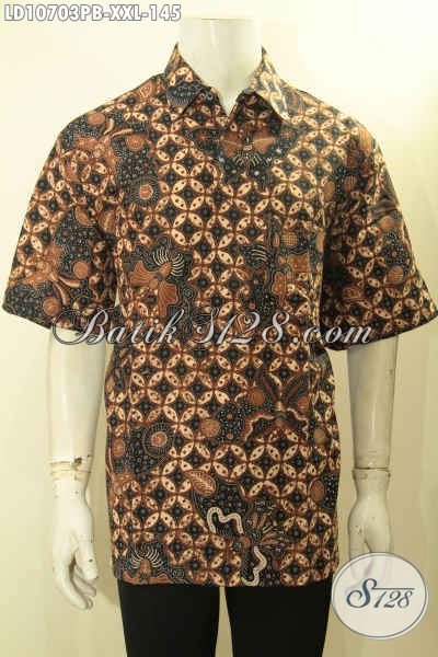 Busana Batik Resmi Lengan Pendek Pria Size XXL, Kemeja Batik Pria Gemuk Bahan Halus Proses Printing Cabut, Di Jual Online 145K [LD10703PB-XXL]