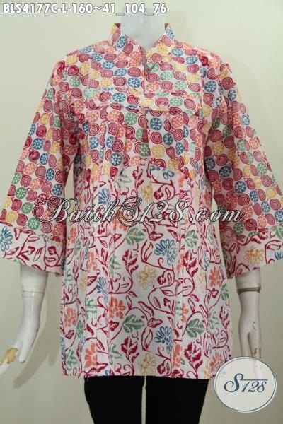 Busana Batik Santai Dua Motif Model Kerah Shanghai Tanpa Kancing, Baju Batik Warna Menarik Desain Inovatif Membuat Perempuan Lebih Cantik Maksimal [BLS4177C-L]