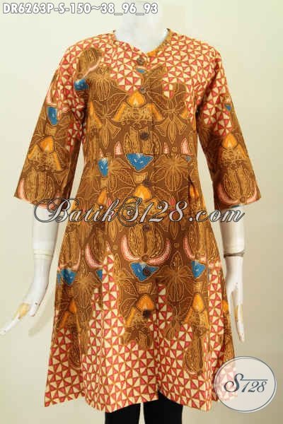 Busana Batik Santai, Pkaaian Batik Wanita Terkini Desain Dress Tanpa Krah, Bahan Halus Proses Printing Ttampil Trendy Dan Bergaya [DR6263P-S]