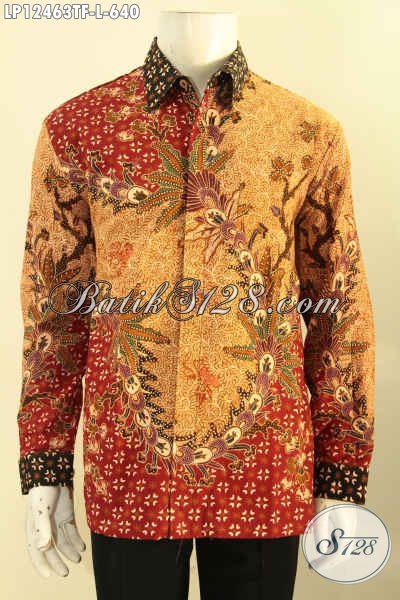 Busana Batik Solo Istimewa Model Lengan Panjang Dengan Lapisan Furing, Kemeja Batik Formal Nan Mewah Jenis Tulis Bisa Untuk Seragam Kerja Dan Ke Pernikahan [LP12463TF-L]