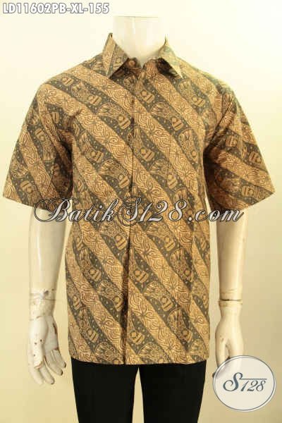 Busana Batik Solo Jawa Tengah Lengan Pendek Motif Mewah, Pakaian Batik Modern Lengan Pendek Buatan Solo Asli Proses Printing Cabut, Menunjang Penampilan Terlihat Gagah Menawan [LD11602PB-XL]