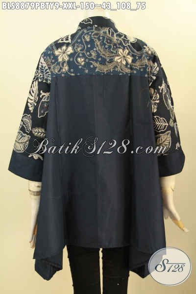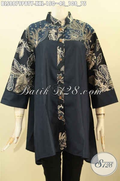 Busana Batik Solo Jawa Tengah Spesial Untuk Wanita Gemuk, Blouse Batik Jumbo Kombinasi Kain Polos Toyobo Model Kerah Shanghai, Tampil Cantik Dan Bergaya [BLS8879PBTY-XXL]