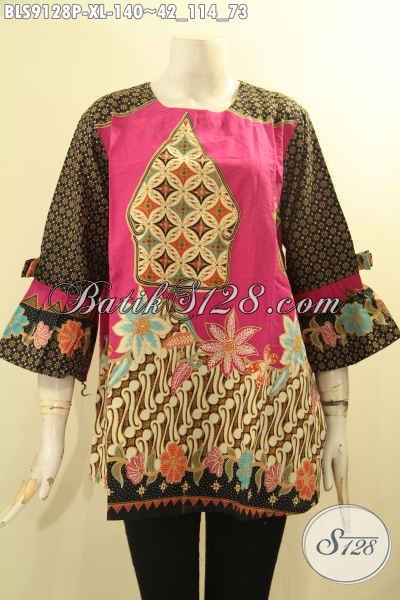 Busana Batik Solo Jawa Tengah Untuk Wanita Dewasa, Hadir Dengan Motif Elegan Dengan Paduan Warna Modern Bahan Halus, Baju Batik Solo Tanpa Kerah Lengan 3/4 Berpita Hanya 100 Ribuan [BLS9128P-XL]