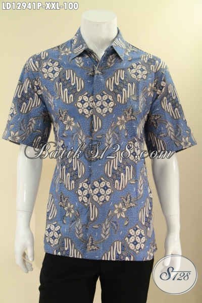 Busana Batik Solo Lengan Pendek Halus Motif Elegan Jenis Printing, Kemeja Batik Istimewa Pria Gemuk Modis Untuk Acara Santai Maupun Resmi [LD12941P-XXL]