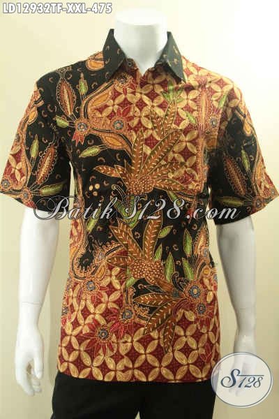 Busana Batik Solo Lengan Pendek Mewah Spesial Untuk Pria Gemuk, Pakaian Batik Tulis Motif Terbaru Nan Elegan Daleman Full Furing, Penampilan Lebih Gagah Berkelas [LD12932TF-XXL]