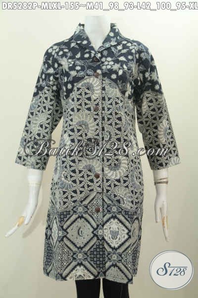 Busana Batik Terbaru Untuk Wanita Muda Dan Dewasa Berbahan Halus Dengan Dual Motif Proses Printing Desain Terusan Kerah Langsung Harga 155K [DR5282P-M , L]