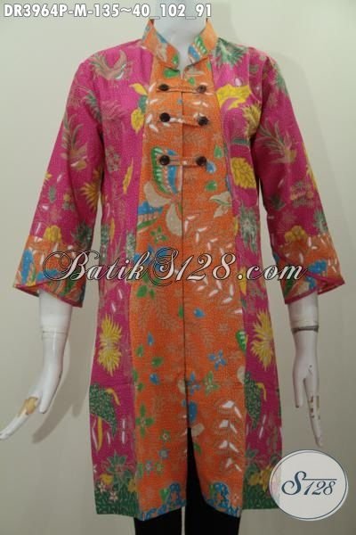 Busana Batik Terkini Buatan Solo Model Kerah Shanghai Kwalitas Bagus Harga Terjangkau, Baju Batik Printing Modern Nyaman Dan Keren Di Pakai Hangouts [DR3964P-M]