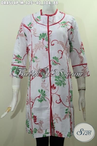 Busana Batik Trendy Motif Bunga Proses Printing Hadir Dengan Model Dress Plisir Kain Polos Wanita Terlihat Lebih Mempesona [DR4514P-M]