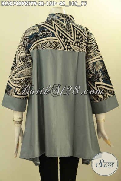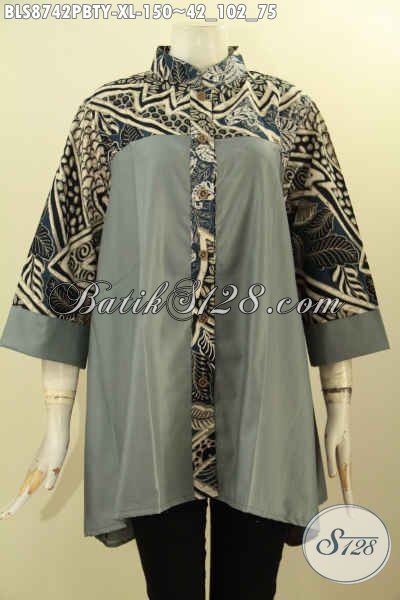 Busana Batik Trendy Wanita Dewasa Kombinasi Kain Batik Dan Kain Polos Toyobo, Hadir Dengan Desain Kerah Shanghai Lengan 3/4 Nan Berkelas, Tampil Cantik Mempesona [BLS8742PBTY-XL]