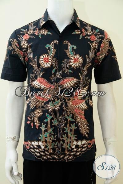 Busana Batik Tulis Keren Motif Burung Dan Bunga, Kemeja Batik Lengan Pendek Hitam Cowok Tampil Gagah Dan Macho [LD2849T-S]